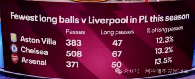 从数据看,本场维拉是本赛季英超对利物浦打长传最少的球队。未来遭遇对方更多打长传时如何应对,是下一步的问题,至少未来两场的对手皇马和曼城不会太多打长传。